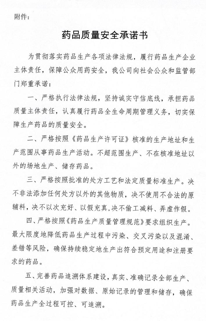 藥品質(zhì)量安全承諾書